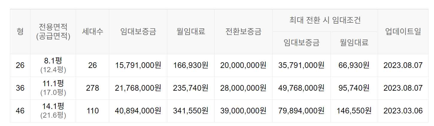 임대보증금 및 월 임대료는 입주자 모집공고일 기준이며, 보증금 최대 전환 시 변동될 수 있습니다.