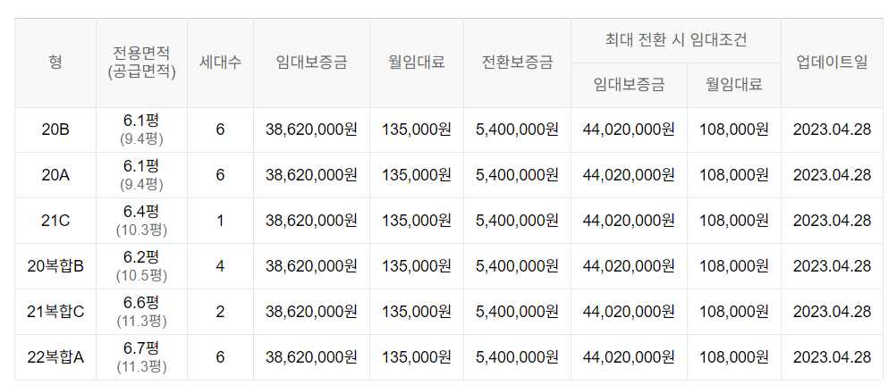 임대보증금 및 월 임대료는 입주자 모집공고일 기준이며, 보증금 최대 전환 시 변동될 수 있습니다.