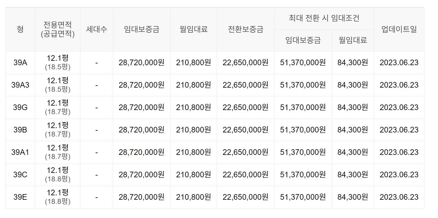 임대보증금 및 월 임대료는 입주자 모집공고일 기준이며, 보증금 최대 전환 시 변동될 수 있습니다.