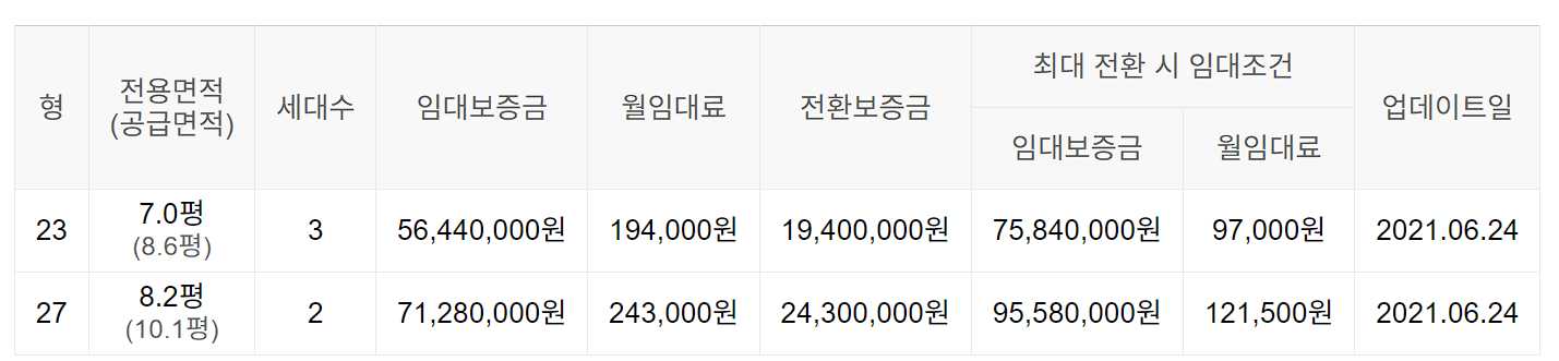 임대보증금 및 월 임대료는 입주자 모집공고일 기준이며, 보증금 최대 전환 시 변동될 수 있습니다.