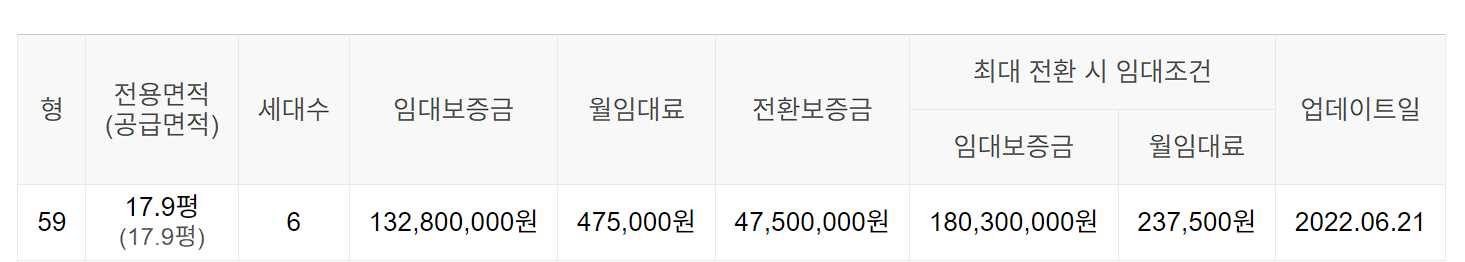 임대보증금 및 월 임대료는 입주자 모집공고일 기준이며, 보증금 최대 전환 시 변동될 수 있습니다.