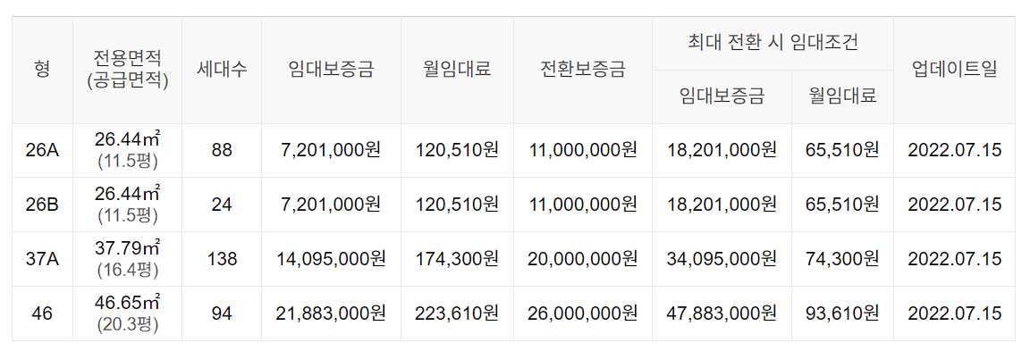 임대보증금 및 월 임대료는 입주자 모집공고일 기준이며, 보증금 최대 전환 시 변동될 수 있습니다.
