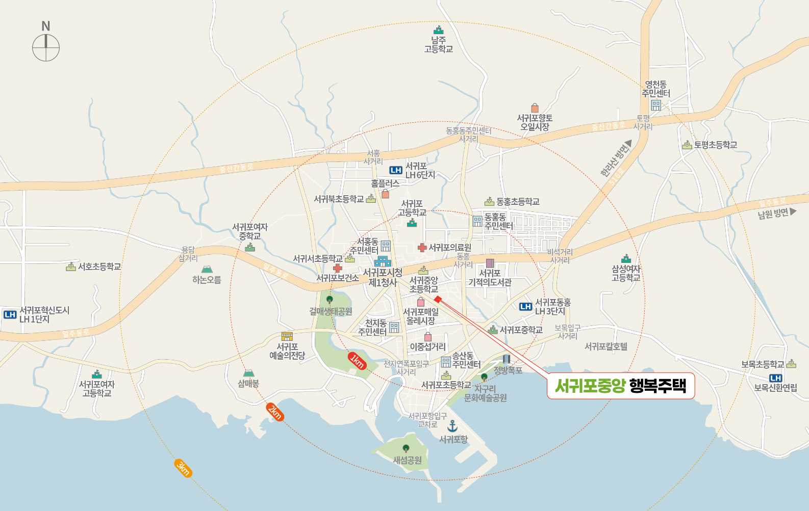 서귀포중앙 행복주택은 서귀포시 시내 올레시장 근처에 위치하고 있습니다.
