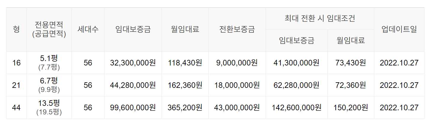 임대보증금 및 월 임대료는 입주자 모집공고일 기준이며, 보증금 최대 전환 시 변동될 수 있습니다.