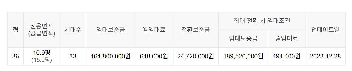 임대보증금 및 월 임대료는 입주자 모집공고일 기준이며, 보증금 최대 전환 시 변동될 수 있습니다.