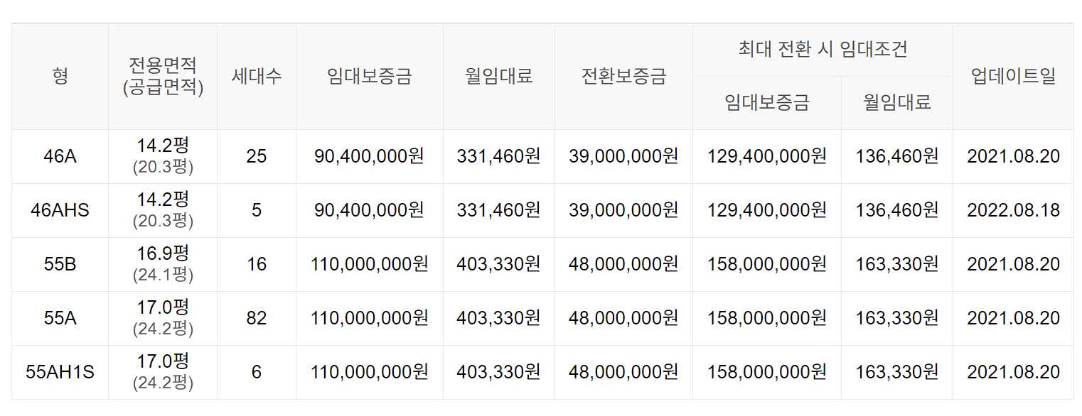임대보증금 및 월 임대료는 입주자 모집공고일 기준이며, 보증금 최대 전환 시 변동될 수 있습니다.
