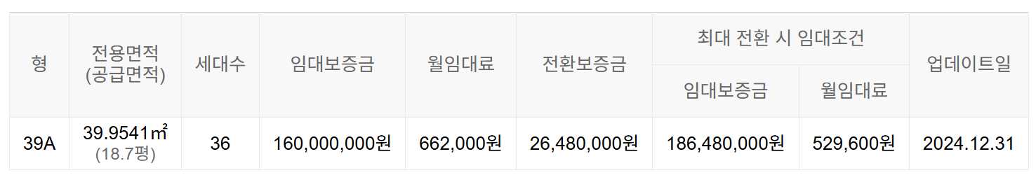 임대보증금 및 월 임대료는 입주자 모집공고일 기준이며, 보증금 최대 전환 시 변동될 수 있습니다.