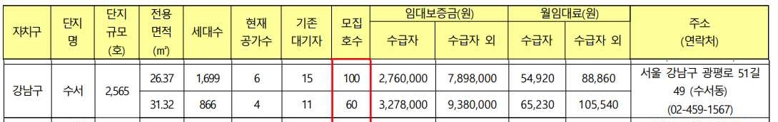 서울특별시 강남구 임대주택 수서주공1단지 영구임대 모집공고 및 청약정보에 대해서 알아봅니다.