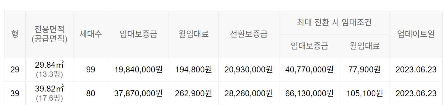 임대보증금 및 월 임대료는 입주자 모집공고일 기준이며, 보증금 최대 전환 시 변동될 수 있습니다.