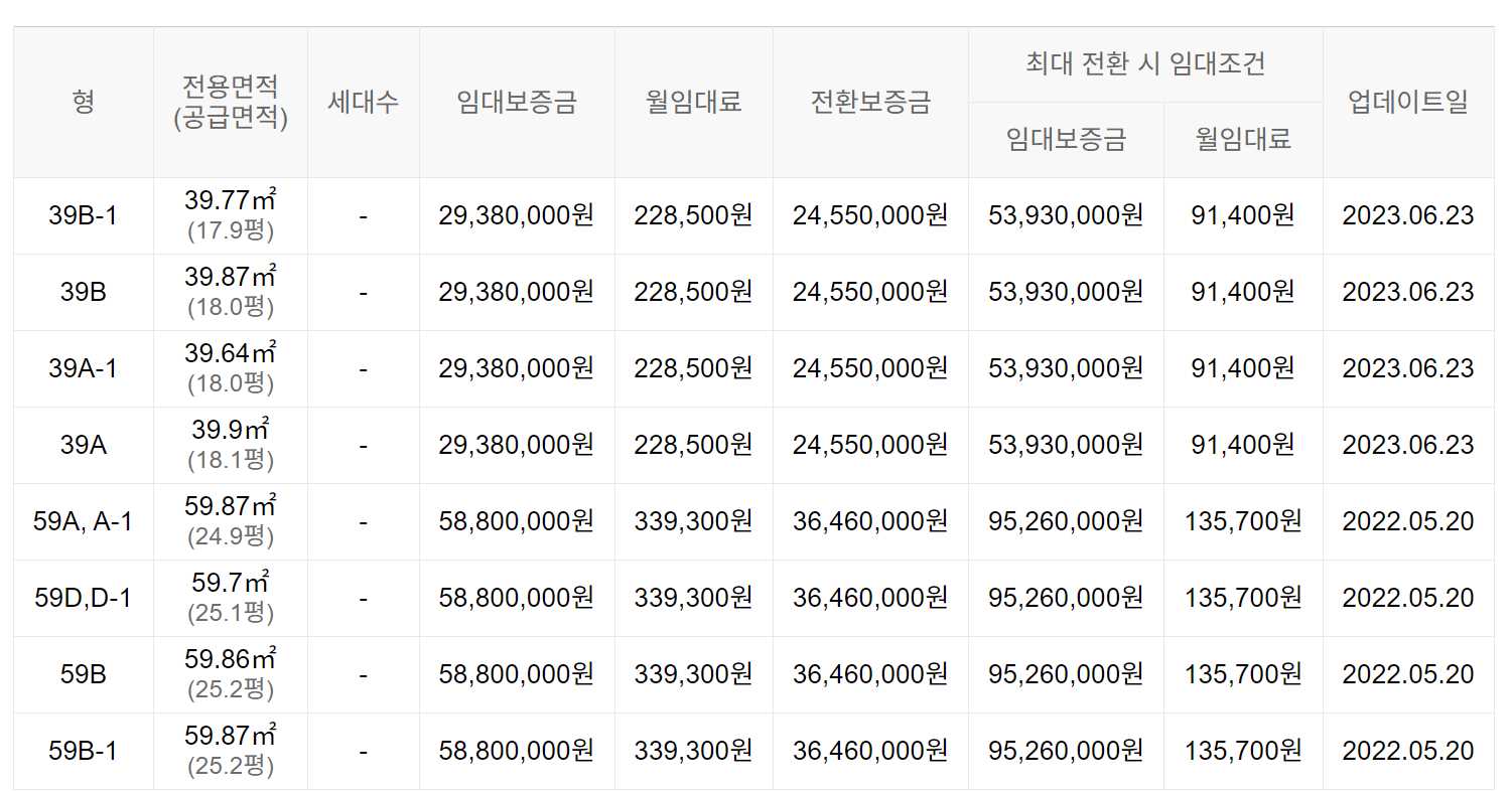 임대보증금 및 월 임대료는 입주자 모집공고일 기준이며, 보증금 최대 전환 시 변동될 수 있습니다.