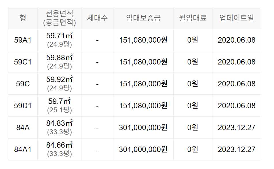 임대보증금 및 월 임대료는 입주자 모집공고일 기준이며, 보증금 최대 전환 시 변동될 수 있습니다.
