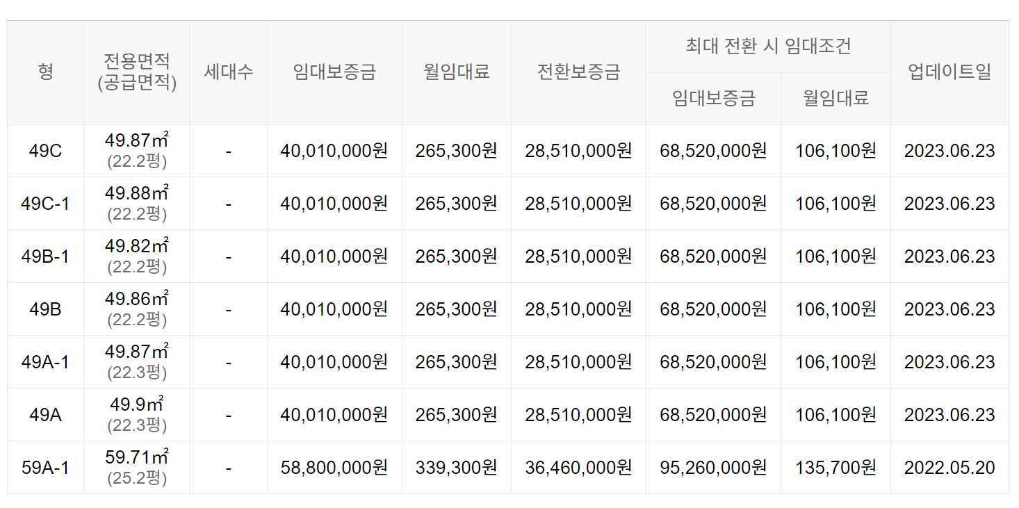 임대보증금 및 월 임대료는 입주자 모집공고일 기준이며, 보증금 최대 전환 시 변동될 수 있습니다.