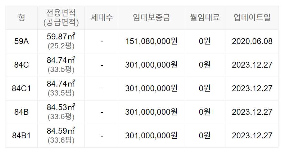 임대보증금 및 월 임대료는 입주자 모집공고일 기준이며, 보증금 최대 전환 시 변동될 수 있습니다.