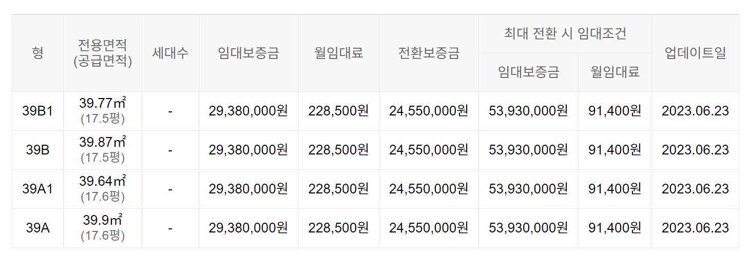 임대보증금 및 월 임대료는 입주자 모집공고일 기준이며, 보증금 최대 전환 시 변동될 수 있습니다.