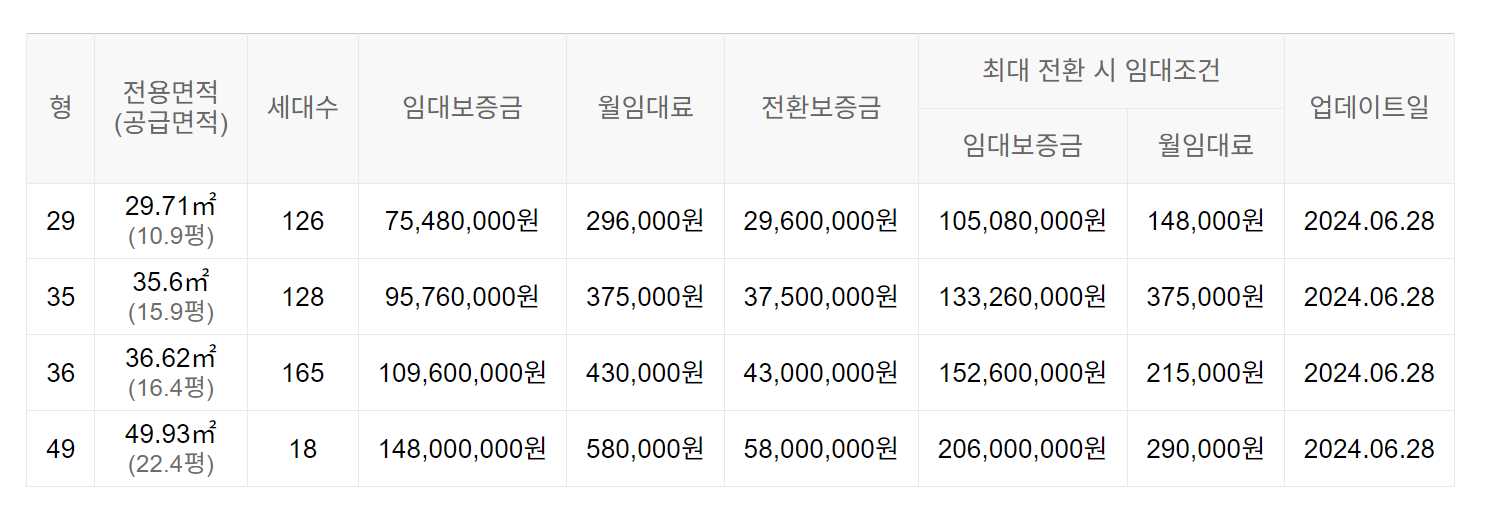 임대보증금 및 월 임대료는 입주자 모집공고일 기준이며, 보증금 최대 전환 시 변동될 수 있습니다.