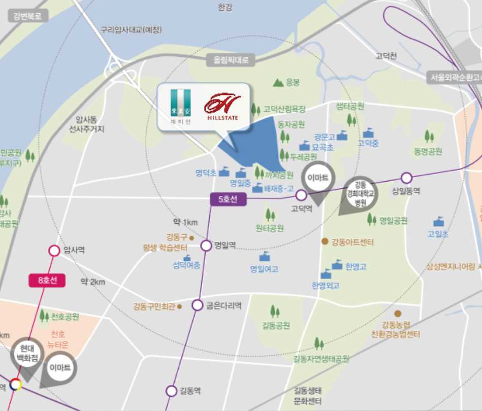 고덕래미안힐스테이트는 서울특별시 강동구에 위치하고 있습니다.
