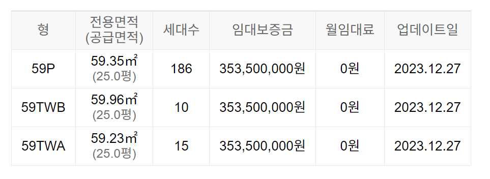 임대보증금 및 월 임대료는 입주자 모집공고일 기준이며, 보증금 최대 전환 시 변동될 수 있습니다.