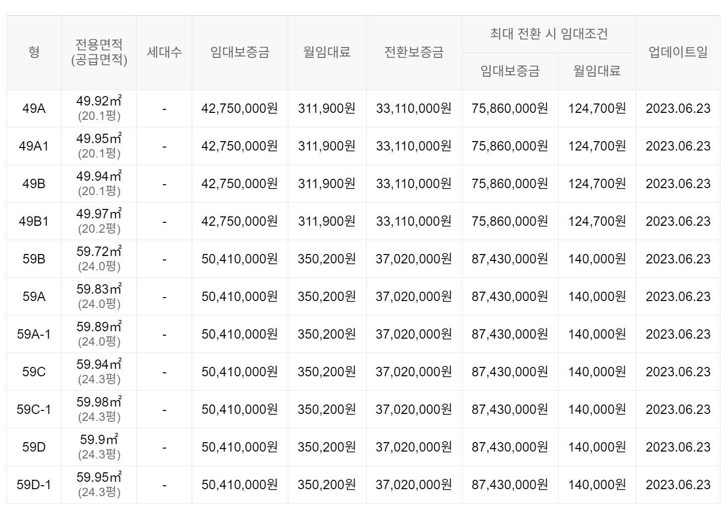 임대보증금 및 월 임대료는 입주자 모집공고일 기준이며, 보증금 최대 전환 시 변동될 수 있습니다.