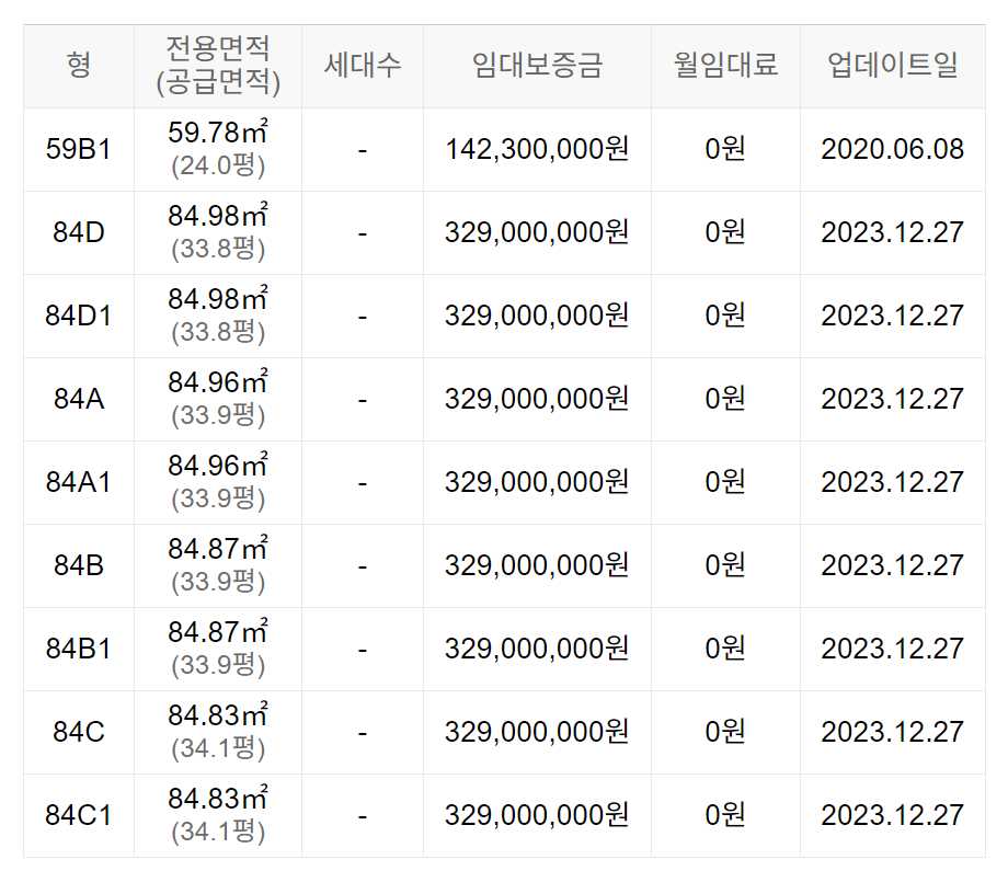 임대보증금 및 월 임대료는 입주자 모집공고일 기준이며, 보증금 최대 전환 시 변동될 수 있습니다.