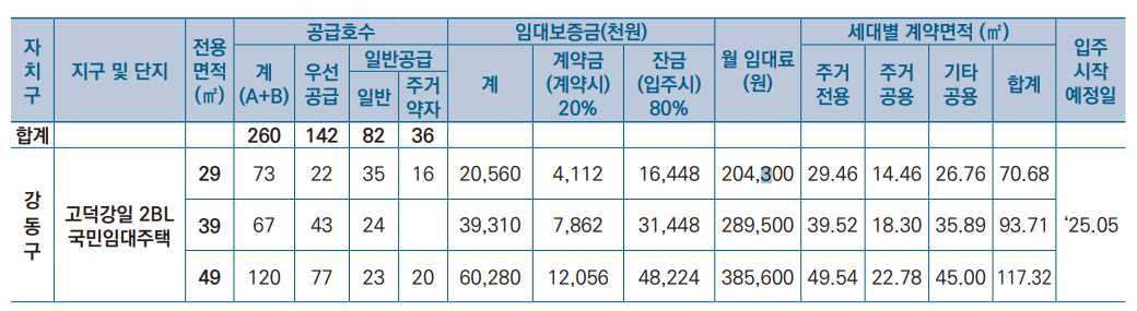 임대보증금 및 월 임대료는 입주자 모집공고일 기준이며, 보증금 최대 전환 시 변동될 수 있습니다.