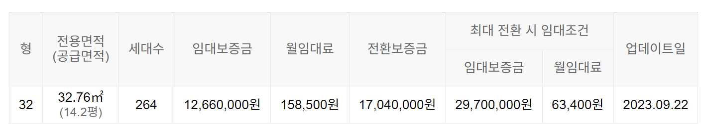 임대보증금 및 월 임대료는 입주자 모집공고일 기준이며, 보증금 최대 전환 시 변동될 수 있습니다.