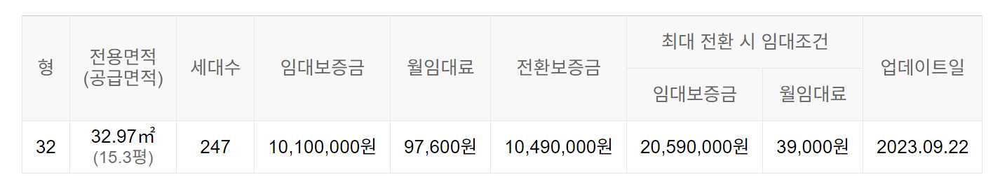 임대보증금 및 월 임대료는 입주자 모집공고일 기준이며, 보증금 최대 전환 시 변동될 수 있습니다.