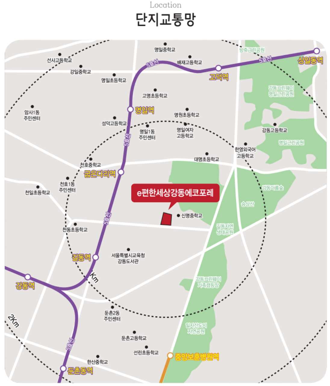 e편한세상강동에코포레는 서울특별시 강동구에 위치하고 있습니다.