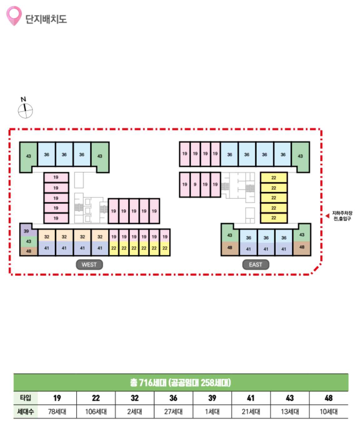 - 건설세대수 총 716 (공공 258 세대, 민간 458 세대)