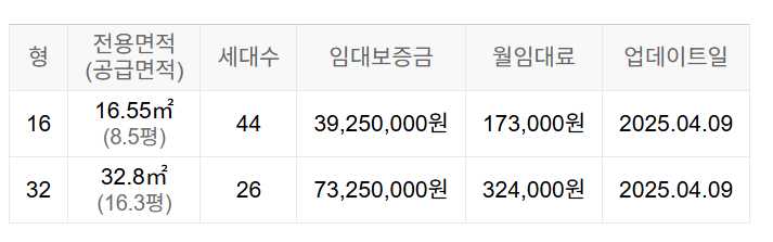 임대보증금 및 월 임대료는 입주자 모집공고일 기준이며, 보증금 최대 전환 시 변동될 수 있습니다.