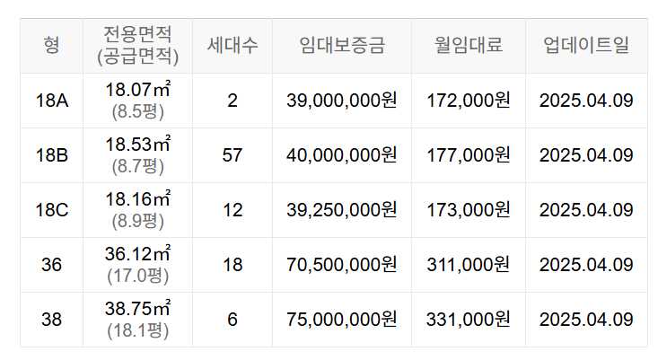 임대보증금 및 월 임대료는 입주자 모집공고일 기준이며, 보증금 최대 전환 시 변동될 수 있습니다.