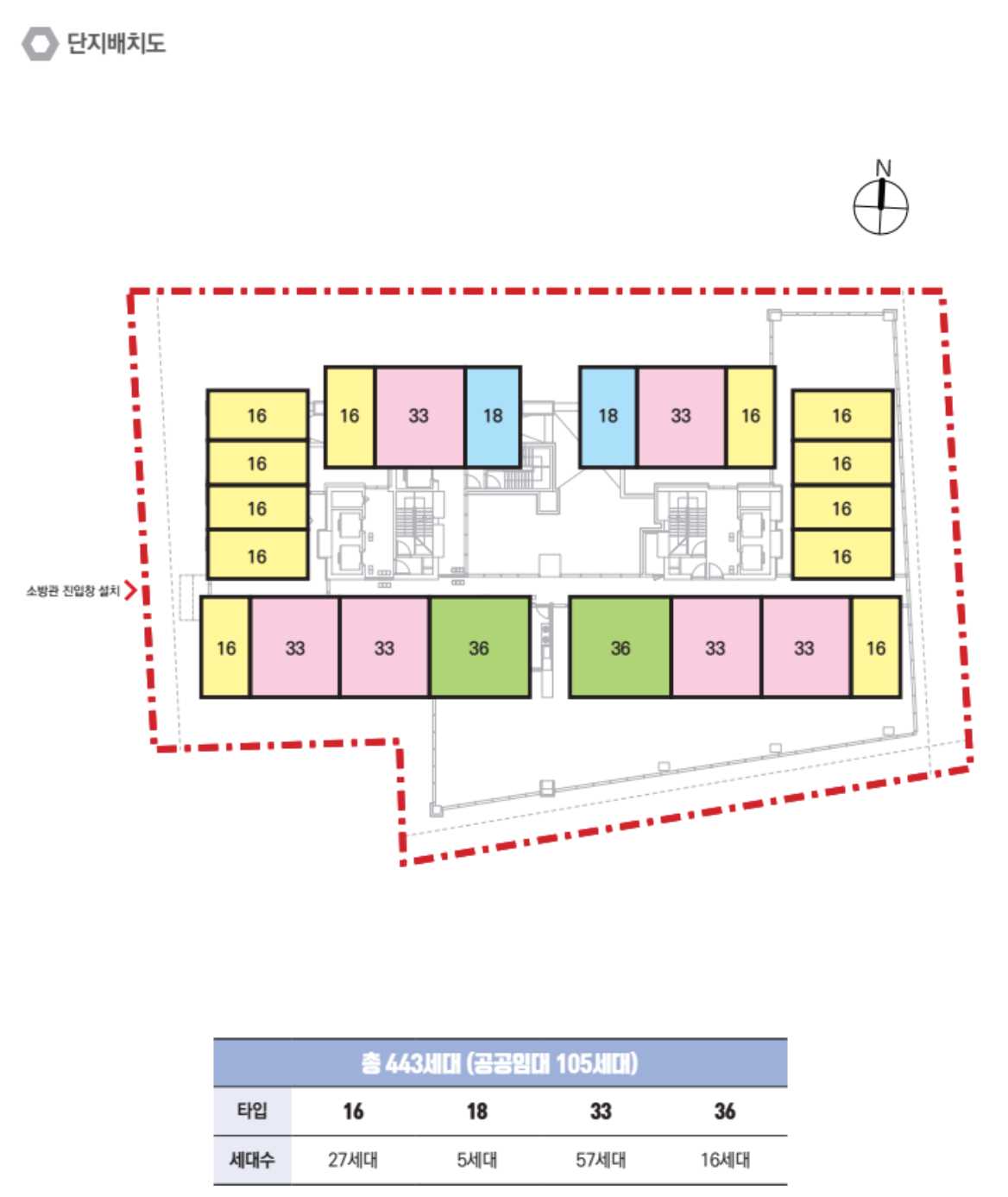 • 건설세대수 총 443 (공공 105 세대, 민간 338 세대)