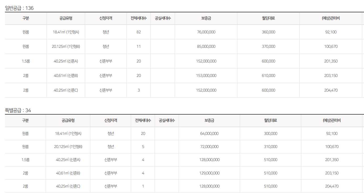 임대보증금 및 월 임대료는 입주자 모집공고일 기준이며, 보증금 최대 전환 시 변동될 수 있습니다.