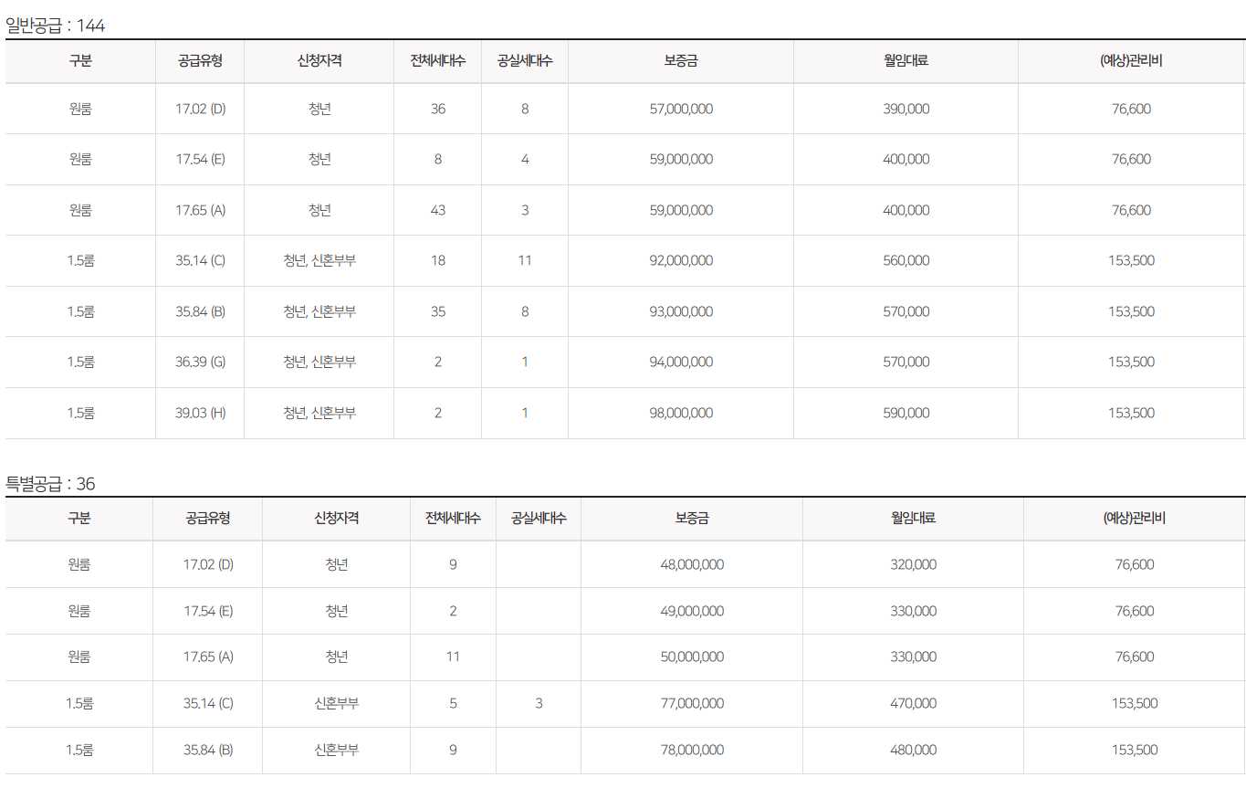 임대보증금 및 월 임대료는 입주자 모집공고일 기준이며, 보증금 최대 전환 시 변동될 수 있습니다.