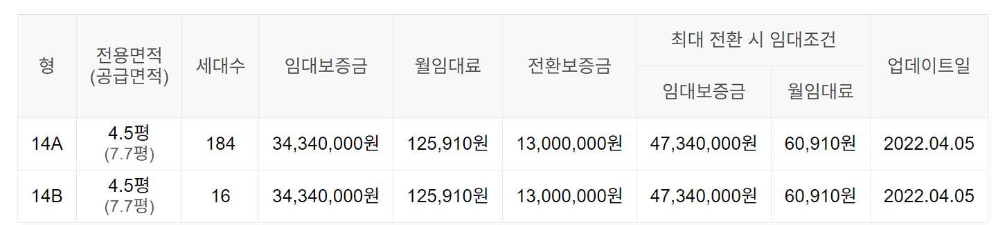 임대보증금 및 월 임대료는 입주자 모집공고일 기준이며, 보증금 최대 전환 시 변동될 수 있습니다.