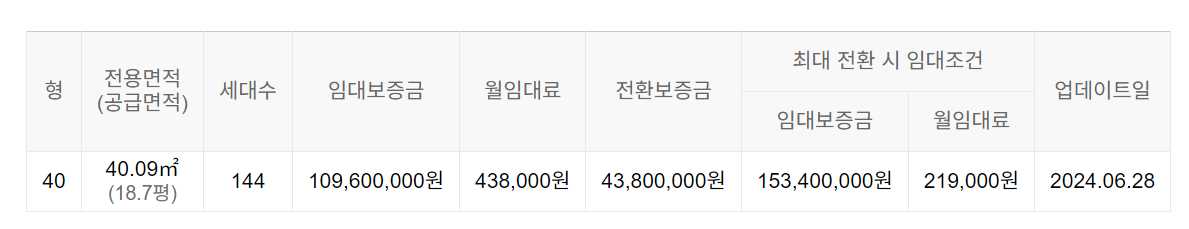 임대보증금 및 월 임대료는 입주자 모집공고일 기준이며, 보증금 최대 전환 시 변동될 수 있습니다.