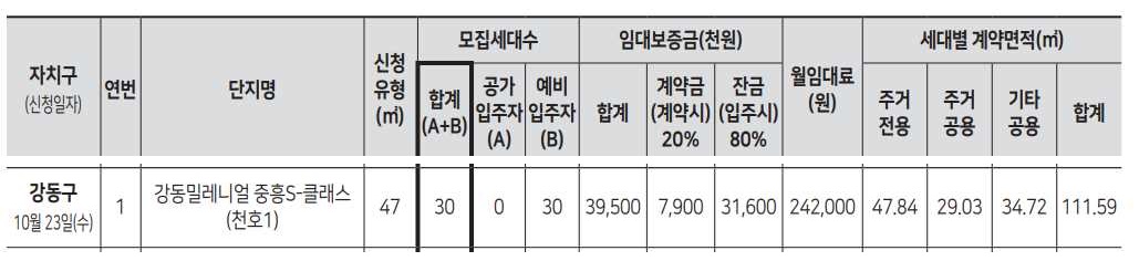 임대보증금 및 월 임대료는 입주자 모집공고일 기준이며, 보증금 최대 전환 시 변동될 수 있습니다.