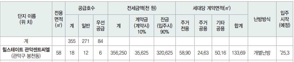 임대보증금 및 월 임대료는 입주자 모집공고일 기준이며, 보증금 최대 전환 시 변동될 수 있습니다.