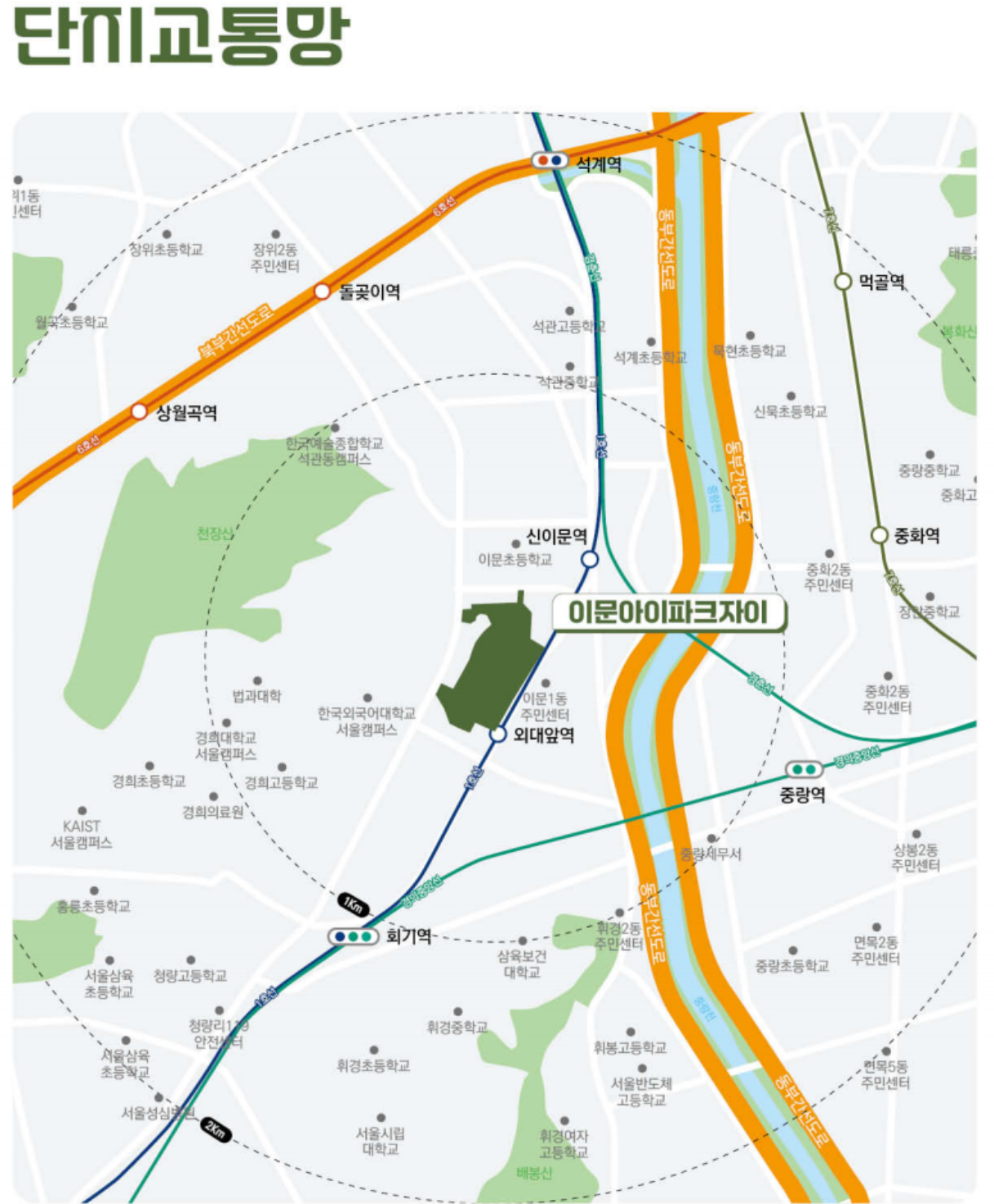 외대앞역(1호선), 신이문역, 청량리역(GTX B·C 예정), 버스정류장