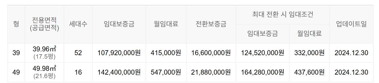임대보증금 및 월 임대료는 입주자 모집공고일 기준이며, 보증금 최대 전환 시 변동될 수 있습니다.