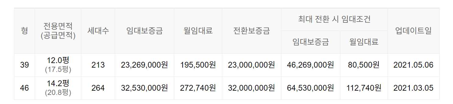임대보증금 및 월 임대료는 입주자 모집공고일 기준이며, 보증금 최대 전환 시 변동될 수 있습니다.