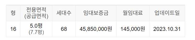 임대보증금 및 월 임대료는 입주자 모집공고일 기준이며, 보증금 최대 전환 시 변동될 수 있습니다.