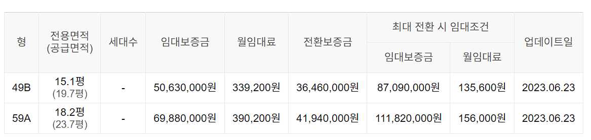임대보증금 및 월 임대료는 입주자 모집공고일 기준이며, 보증금 최대 전환 시 변동될 수 있습니다.