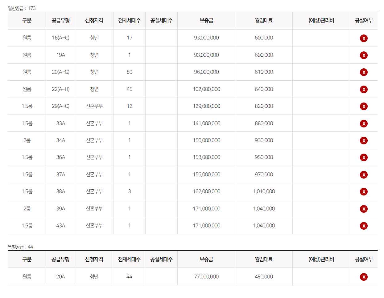 임대보증금 및 월 임대료는 입주자 모집공고일 기준이며, 보증금 최대 전환 시 변동될 수 있습니다.