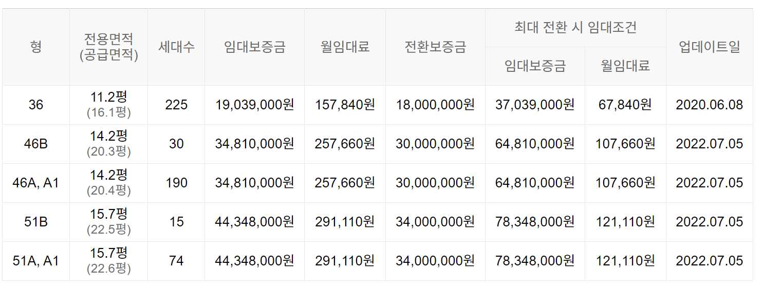 임대보증금 및 월 임대료는 입주자 모집공고일 기준이며, 보증금 최대 전환 시 변동될 수 있습니다.