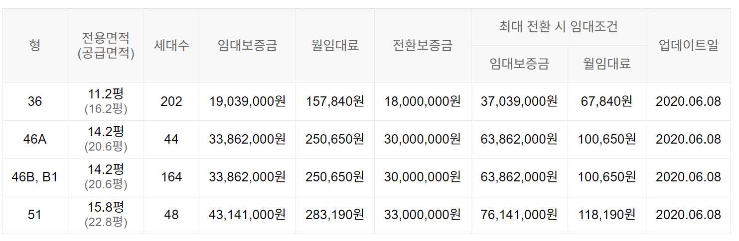 임대보증금 및 월 임대료는 입주자 모집공고일 기준이며, 보증금 최대 전환 시 변동될 수 있습니다.
