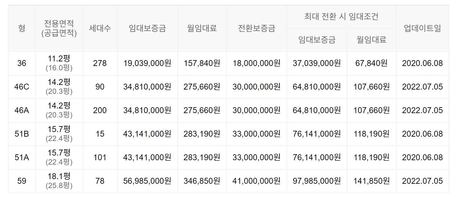임대보증금 및 월 임대료는 입주자 모집공고일 기준이며, 보증금 최대 전환 시 변동될 수 있습니다.