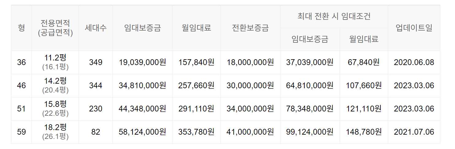 임대보증금 및 월 임대료는 입주자 모집공고일 기준이며, 보증금 최대 전환 시 변동될 수 있습니다.