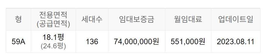임대보증금 및 월 임대료는 입주자 모집공고일 기준이며, 보증금 최대 전환 시 변동될 수 있습니다.