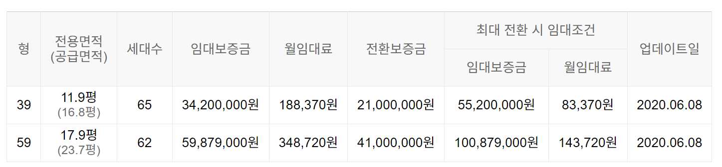 임대보증금 및 월 임대료는 입주자 모집공고일 기준이며, 보증금 최대 전환 시 변동될 수 있습니다.