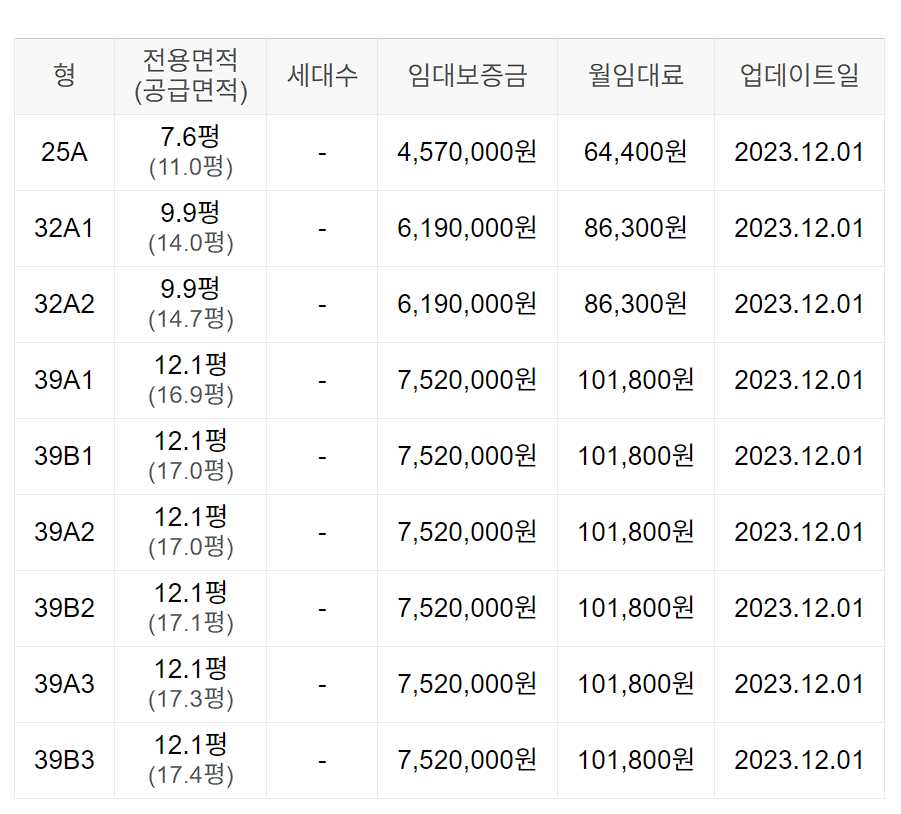 임대보증금 및 월 임대료는 입주자 모집공고일 기준이며, 보증금 최대 전환 시 변동될 수 있습니다.